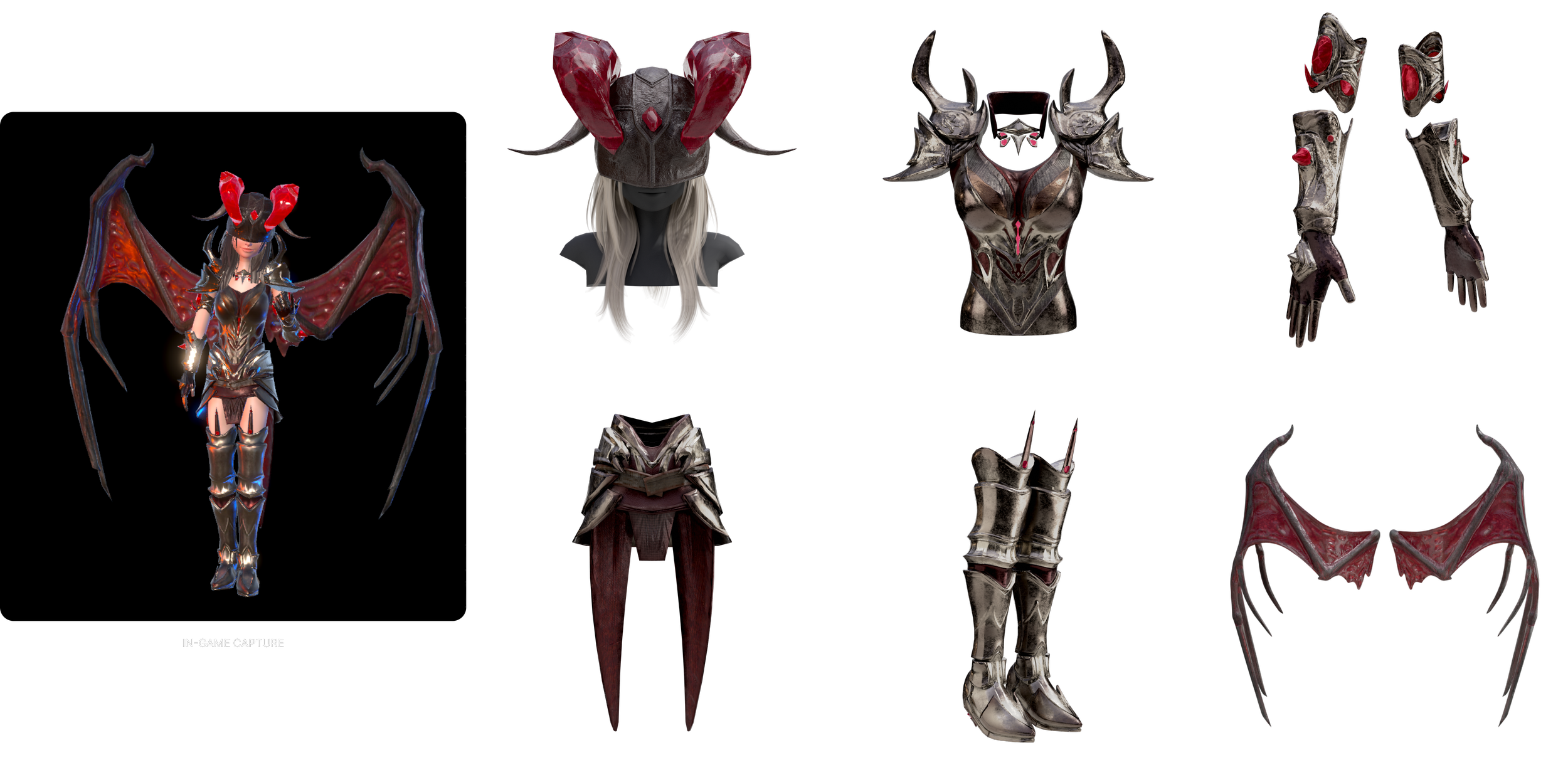 I modeled each full set in 3ds Max, added intricate details in ZBrush and Substance Painter, and created multiple texture variations for each design before rendering the final sets in Blender.